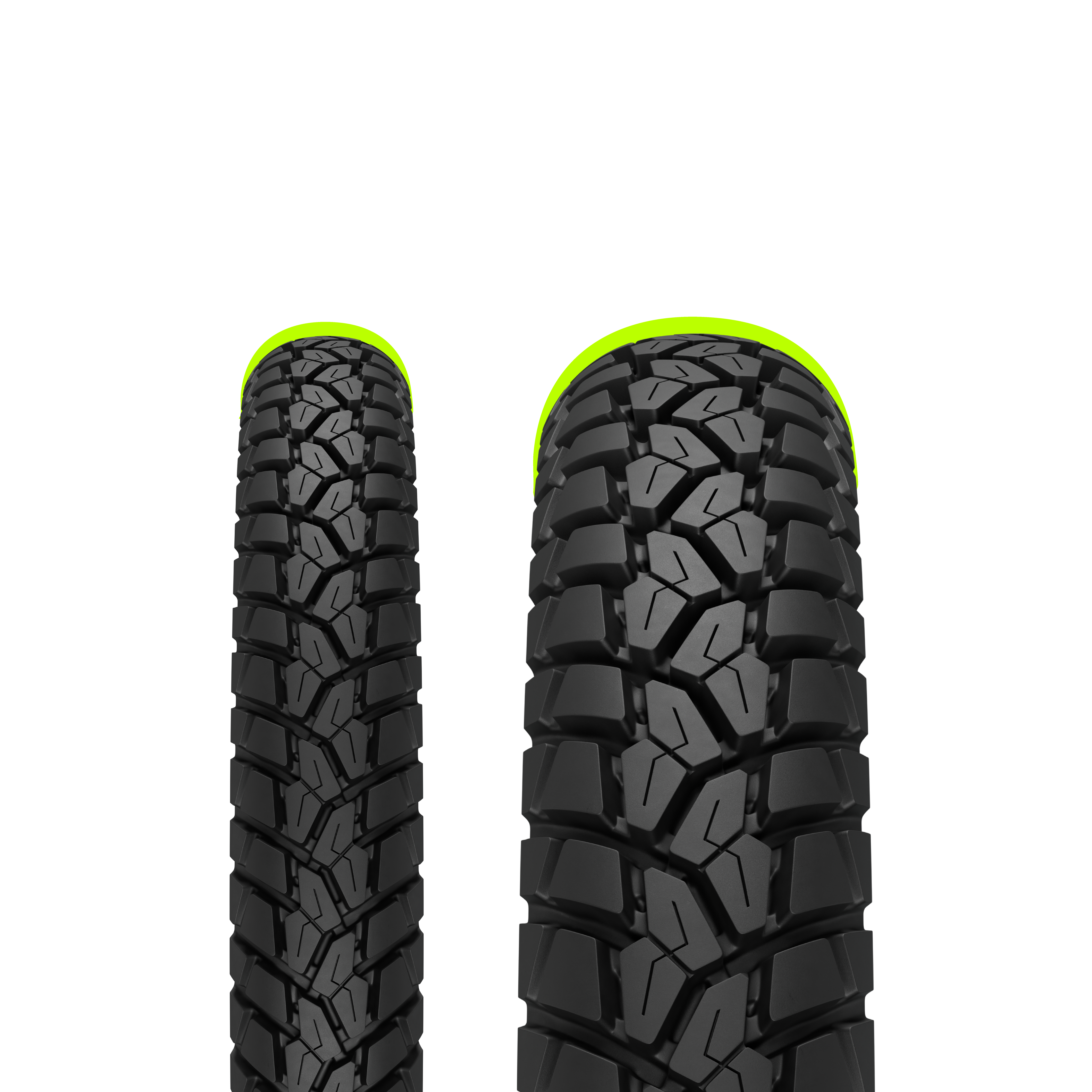 Longitudinal zig-zag grooves with spaced blocks:Enables self-cleaning for mud and dirt, helping the tyre hold onto the terrain.