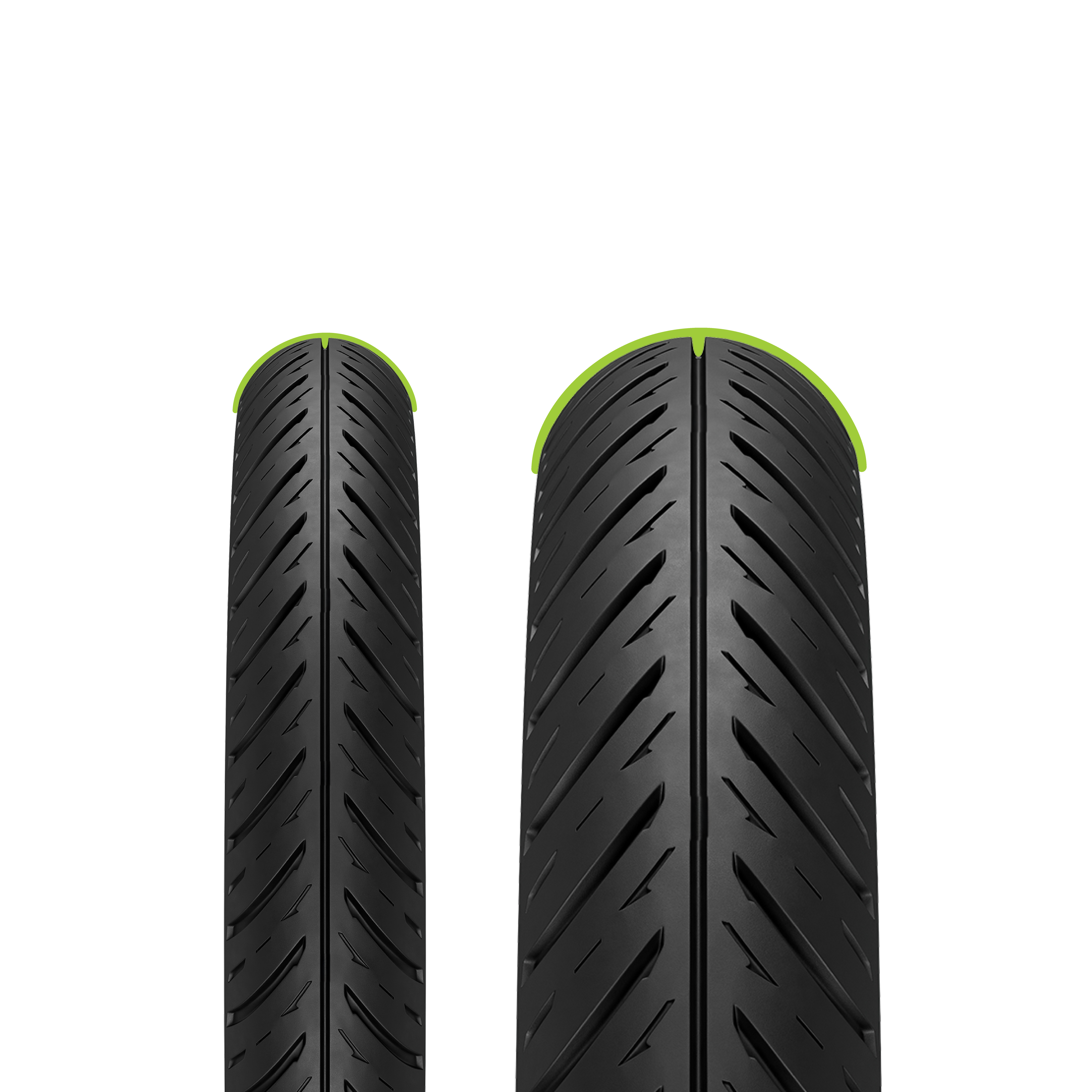 Radical response profile:​ delivers progressive contact patch at lean angles​.