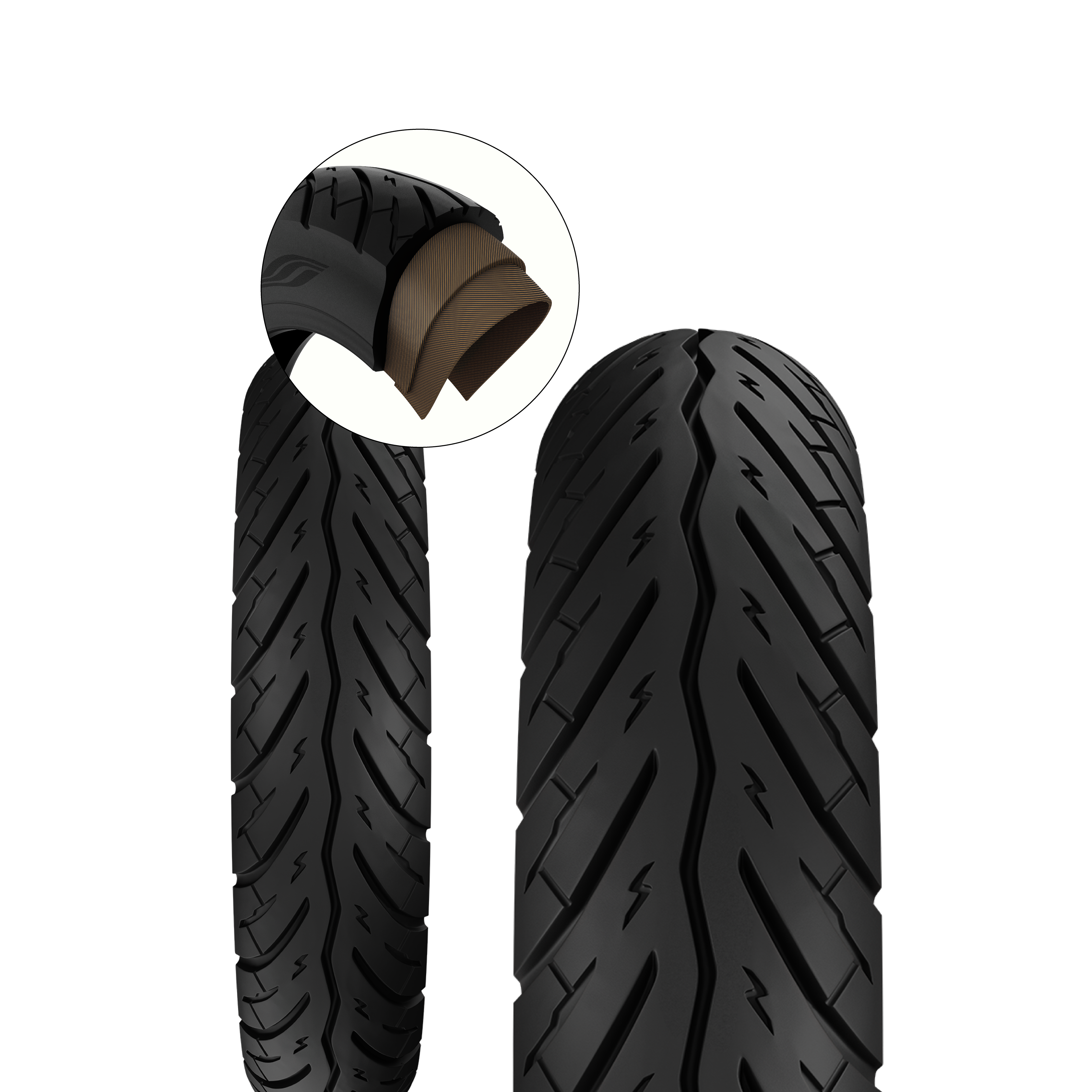 Deep Zig-Zag groove at center: channels water away,creates more road contact and lateral bite.
